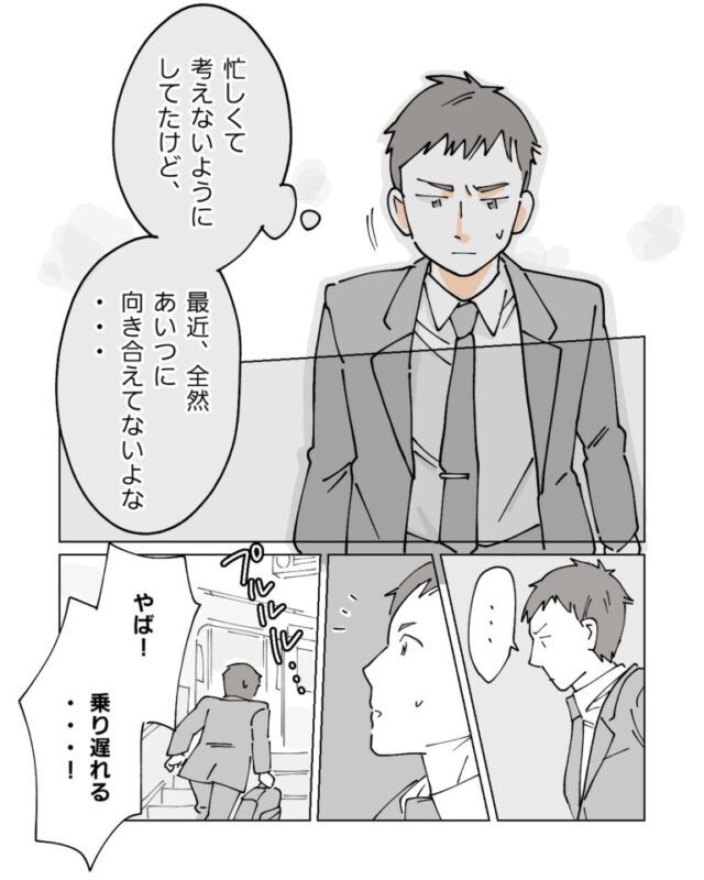 「忙しくて考えないようにしてたけど、最近、全然あいつに向き合えてないよな・・」と自分の行動を振り返って反省する良平さんは、電車に乗り遅れそうになり慌てて走り出しました。