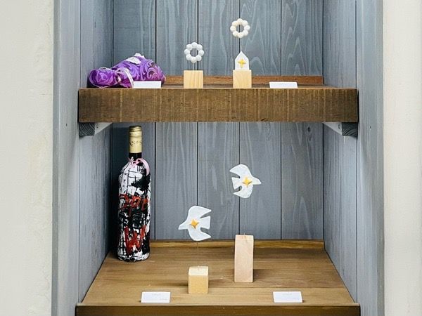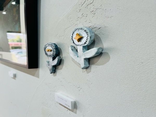 個展では絵画や、軽い素材の石粉粘土を使ったレリーフなど、約20点が展示販売されています