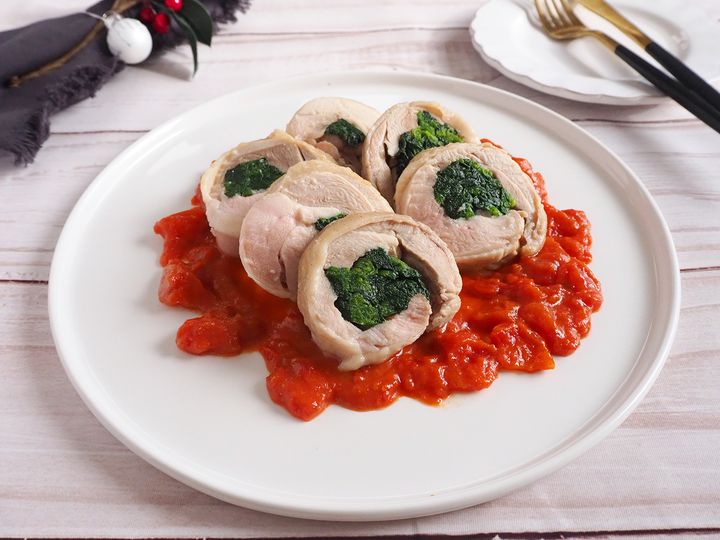 ほうれん草の緑色とトマトソースの赤色が、クリスマスの雰囲気を演出してくれます♪