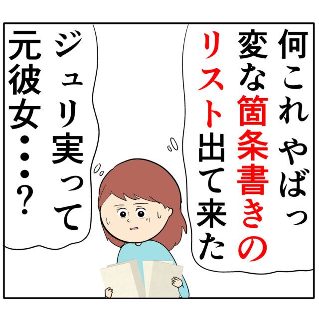 「何これ、やばっ。変な箇条書きのリスト出て来た。ジュリ実って元彼女・・・?」予想外の内容に衝撃を受けるめいさん。