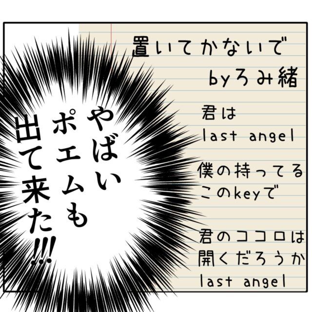 さらに、『置いてかないで byろみ緒 君はlast angel・・・』などと書かれたポエムもありました。「やばいポエムも出て来た!!!」めいさんは焦ります。