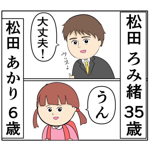 「大丈夫!」と夫のろみ緒さん、「うん」と娘のあかりちゃんが笑顔で答えます。