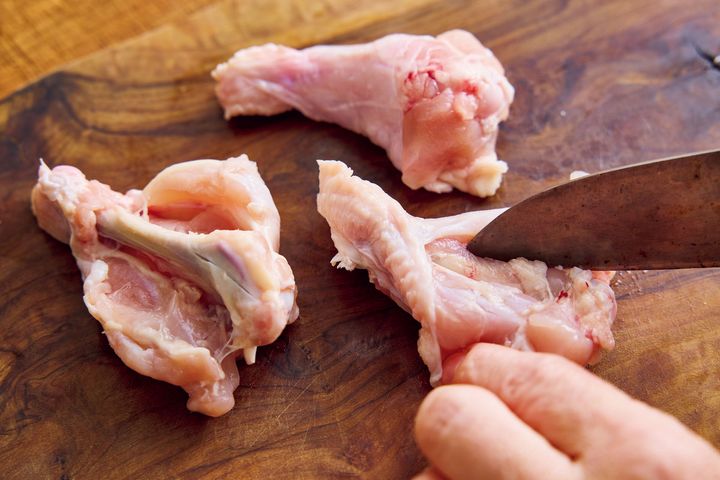 鶏肉は骨にそって両側に切り込みを入れ、開く。ボールに〈BBQだれ〉の材料を入れてよく混ぜ、鶏肉を加えてよくもみ込む。冷蔵庫で1時間~一晩置く。