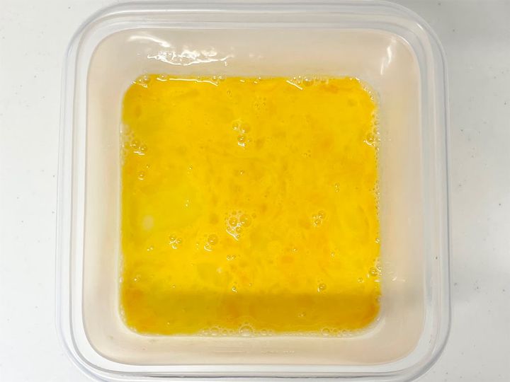 1.耐熱容器に卵を入れ、溶きます。