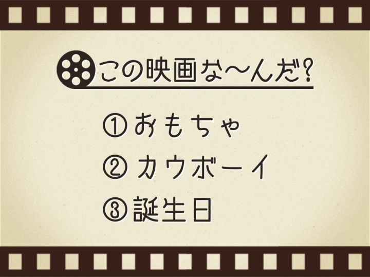 3. 【3つのヒントで映画を当てろ!】「おもちゃ・カウボーイ・誕生日」連想する名作は何でしょう?