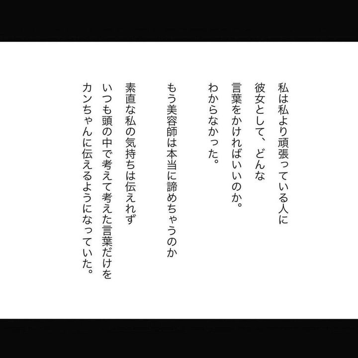カンちゃんが美容師の夢をあきらめることも、かか丸'22さんは納得しきれていないようですが、直接聞くことはできなかったようです。
