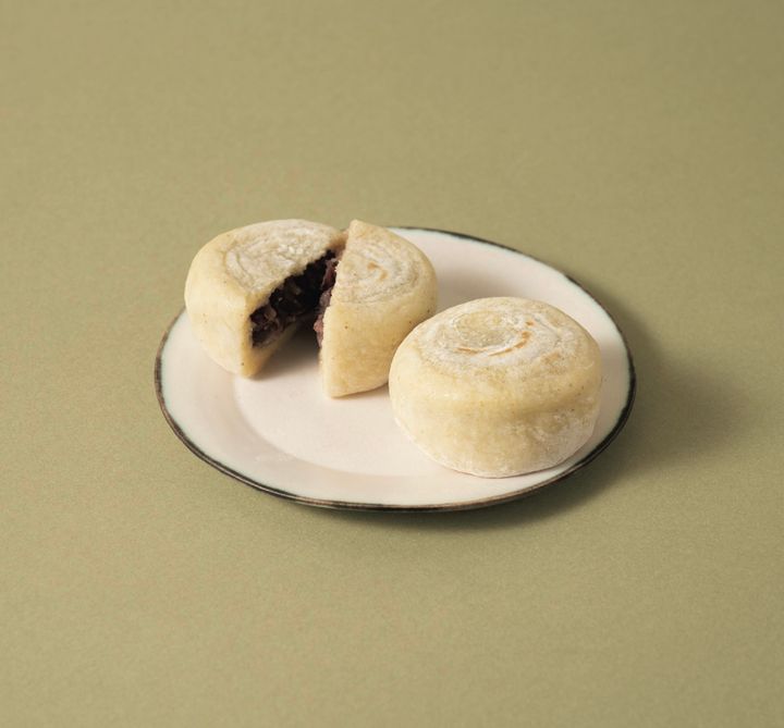 「このふんわり食感は他では味わえません(鈴木幹也さん)」。粟(あわ)とつきたてのお餅を混ぜた生地は、“赤ちゃんのほっぺ”と例えられるほどもっちりほわほわ。噛むほどに、風味豊かな粟の香りを感じられる。あわ大福 ¥290