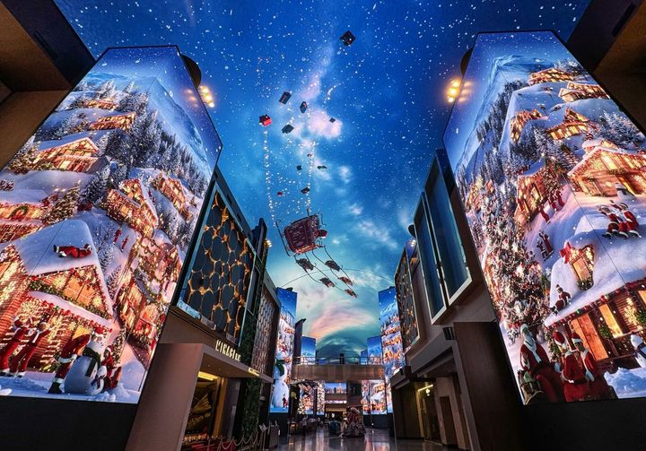 INSPIREを代表するエンターテインメントコンテンツのひとつである、巨大なLEDスクリーンに覆われたストリート「オーロラ」では、「サンタクロース村」をテーマに、たくさんのサンタがクリスマスの準備をして村中を駆け回る童話のような雪国の世界を表現。トナカイのソリに乗ったサンタクロースが今にも夜空から舞い降りてきそうな大迫力の映像美は、感動に包まれること間違いなし。
