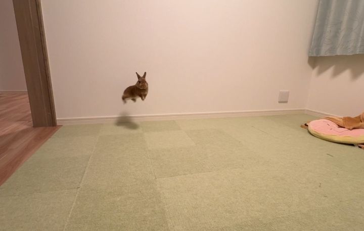 そんな中、うさぎのくりまるくんと暮らす投稿者・くりまるのお部屋(@kurimaruchannel)さんは、「遠くで空飛んでました」と写真を投稿。躍動感あふれるくりまるくんの姿に注目が集まりました。