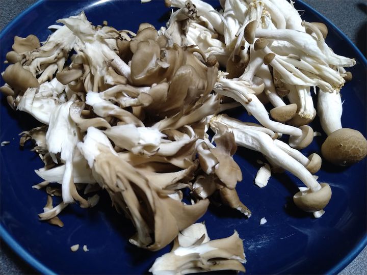 3.ぶなしめじは石づきを落として小房に分け、エリンギは手で裂いておく。
