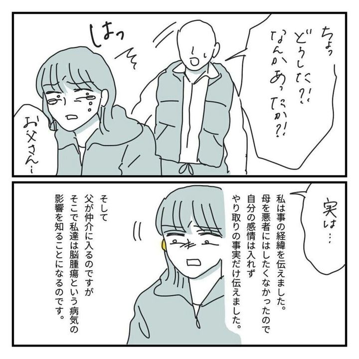 そして2人の様子がおかしいことに気づき駆けつけてくれた父。このあと、母の異変の原因が明らかになります。