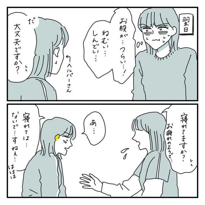 介護を始めてまだ数日ですがキクチさんは心も体もボロボロになってしまいました。ですがヘルパーさんの助言で「無理しちゃダメだ」と気づきます。介護のために家族が一緒に倒れてしまうのは避けたいですよね。