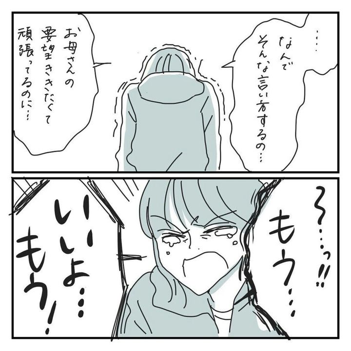 母とキクチさんのやりとりは堂々巡り…。とうとう、キクチさんの目は涙であふれてしまいました。