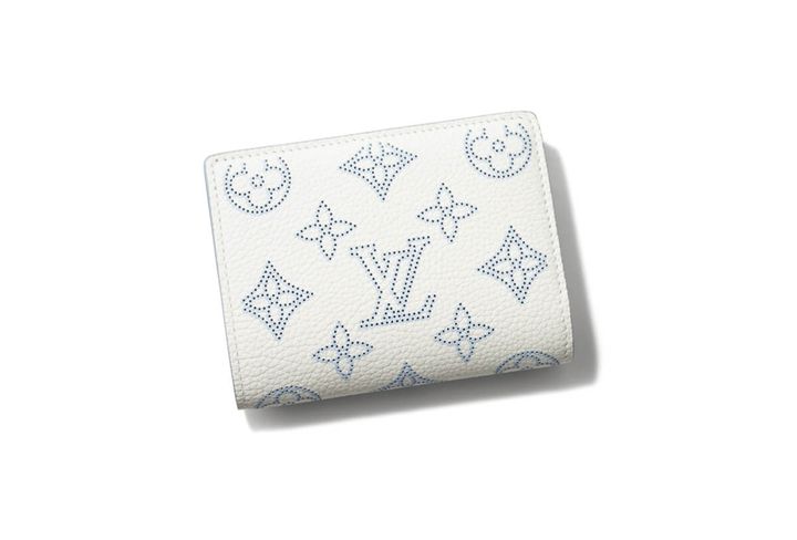 アイコニックな「モノグラム」を優雅にアップデート。手になじむ柔らかいしぼ革を使用。白地にブルーの「モノグラム」が上品。