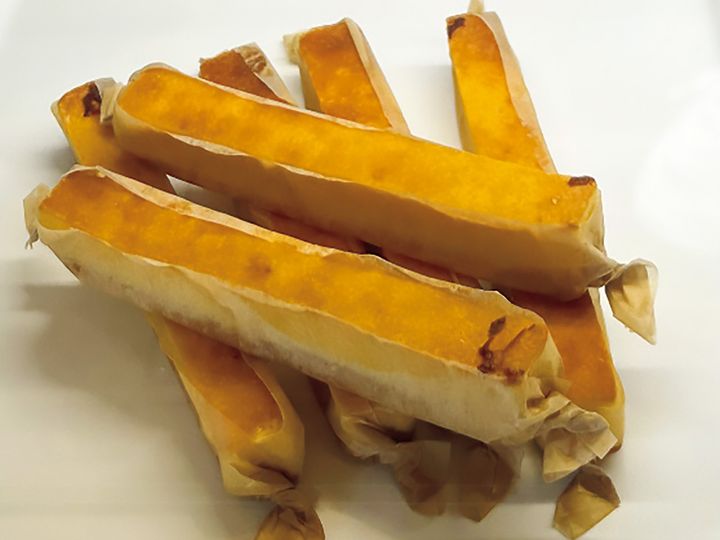 店内に8cm角の棒状のヒバ材を組み込んだ建築を配した『COEDA HOUSE』では、建築パーツを模した「ATAMI 橙 チーズケーキ」(¥520)を楽しみました。