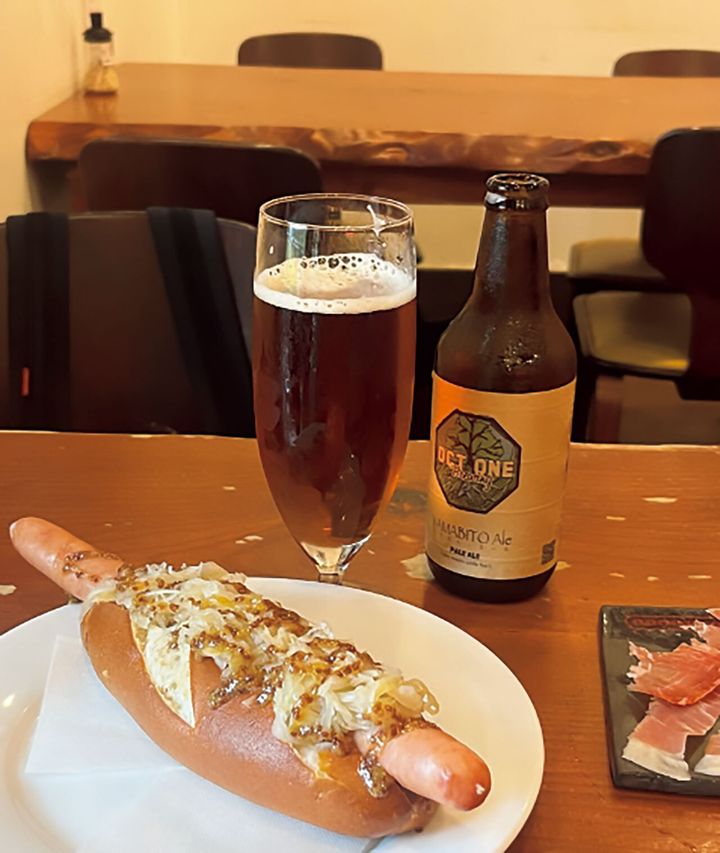 はみ出るソーセージの「プレッツェルドッグ」(¥810)もインパクト大。(スズキ)