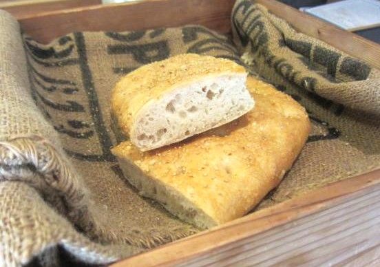 セットのパンは、自家製フォカッチャがカットされてかごに入っていて、サラダと一緒にセルフで取りに行きます。