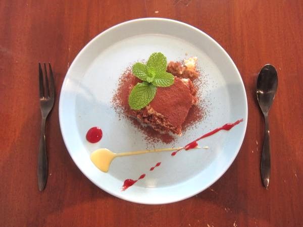 デザートも気になって、食べたくなって注文しちゃいました。ティラミス。お皿のソースが素敵、マスカルポーネチーズの美味しさに、コーヒーの香りが豊かなお味で癒しのティラミスでした。