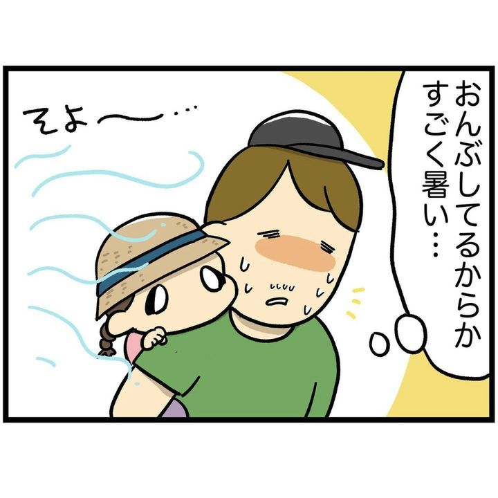 抱っこ攻撃やおねだりの嵐など、子連れでのお出掛けはいつだって余裕などありませんよね。もす(@mosumanga30)さんは、4歳の娘さんをおんぶして信号待ちをしています。人ごみとおんぶのダブルパンチで、汗だくになるもすさん。すると、そよ~と涼しい風がどこからか吹いてきて…?疲れた心に染みる、ほっこりエピソードをごらんください。