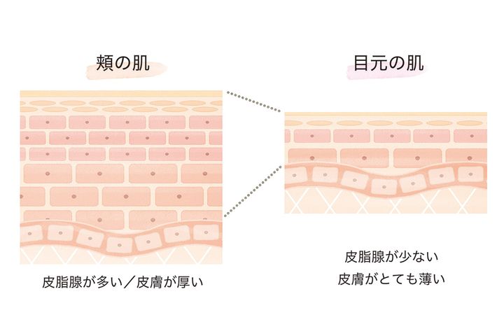 A.目元の皮膚はラップ1枚より薄いので一刻も早く保湿してください!