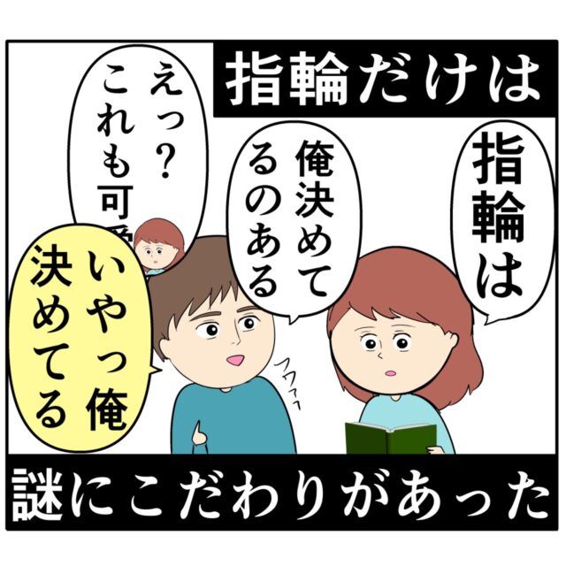 しかし指輪だけは、めいさんが選ぼうとしても「俺決めてるのある」と譲らず謎にこだわりがあったのです。
