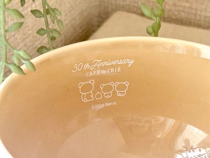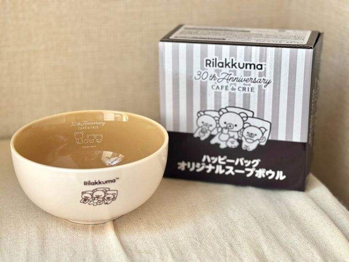 リラックマ”たちの可愛らしいイラストと『カフェ・ド・クリエ』30周年記念の文字を描いた、オリジナルデザインのスープボウル。癒しのイラストに思わず笑みがこぼれます。