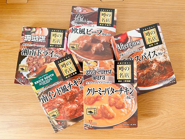 エスビー食品から販売中の、名店の味わいが楽しめるレトルトカレーシリーズが5種類入っています。