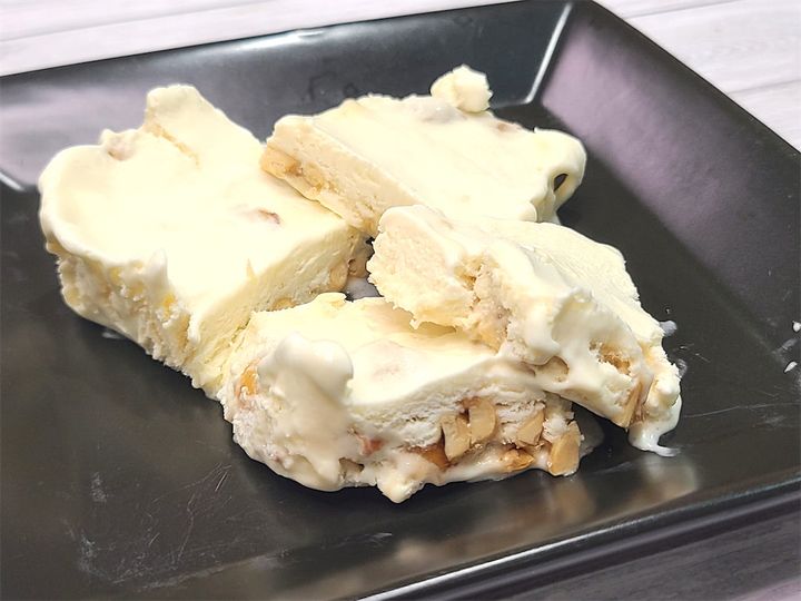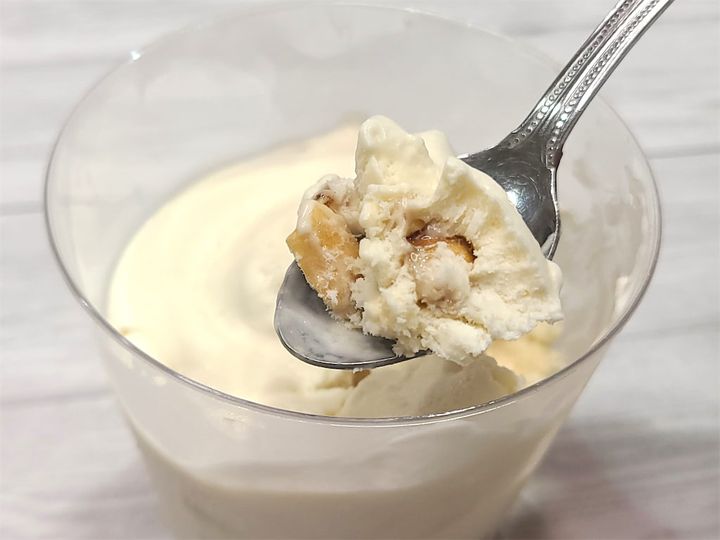 実はわたし、作る前は「生クリームに砂糖、キャラメルにナッツ、メレンゲに蜂蜜…ってめちゃくちゃ重くない⁉」と思っていたんです。これは甘ったるいアイスクリームが出来上がっちゃうぞ、と覚悟を持って食べたんですが、一口食べてびっくり!一切重さなんて感じません!逆にあっさり、さっぱりしているくらいなんです!ひんやりなめらかな口当たりで、蜂蜜の芳醇な香りやナッツのカリッとした食感が最高♡見た目ほどのミルク感はないんです♪