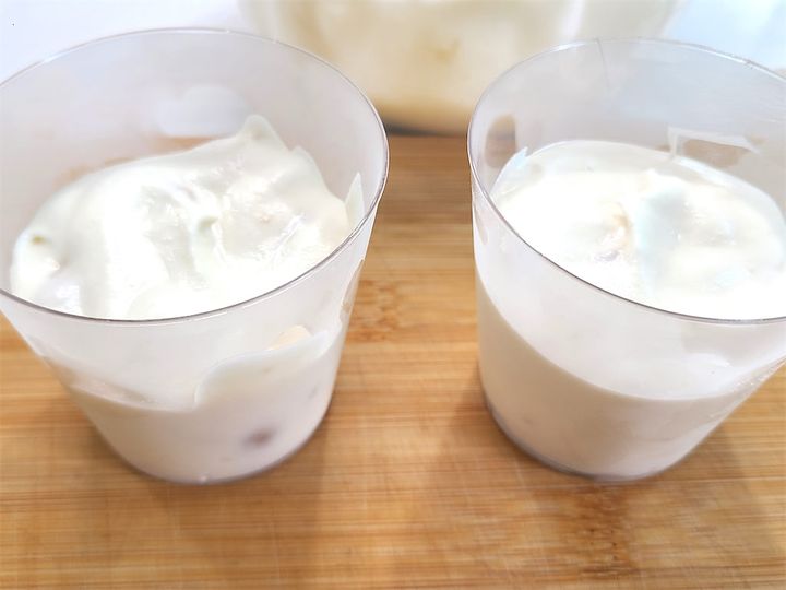 5. 412を加え、全体をよく混ぜたら冷やした容器に入れて、冷蔵庫で2時間ほど冷やし固めます。