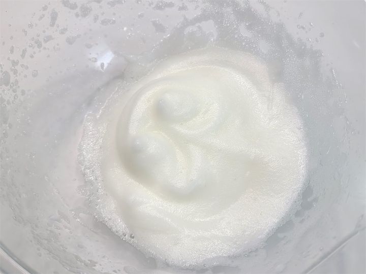 3. 別のボウルで卵白をハンドミキサーで泡立てメレンゲを作ります。