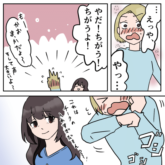 「・・えっ、や・・やだ違う!違うよ!」アユさんは否定するものの「もー、かお真っ赤だよー!」自分の気持ちをなかなか認めようとしないアユさんを、サユリさんは微笑みながら見守っていました。