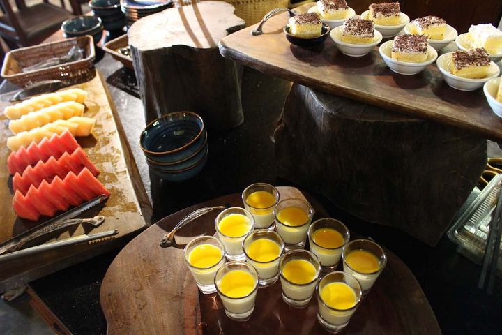 デザートはビュッフェ台から好きなものをチョイスできます。パンナコッタやプチケーキ、スイカなどのフルーツが並んでいました。ちょっと上質なベトナム北部の料理を味わうならおすすめです。