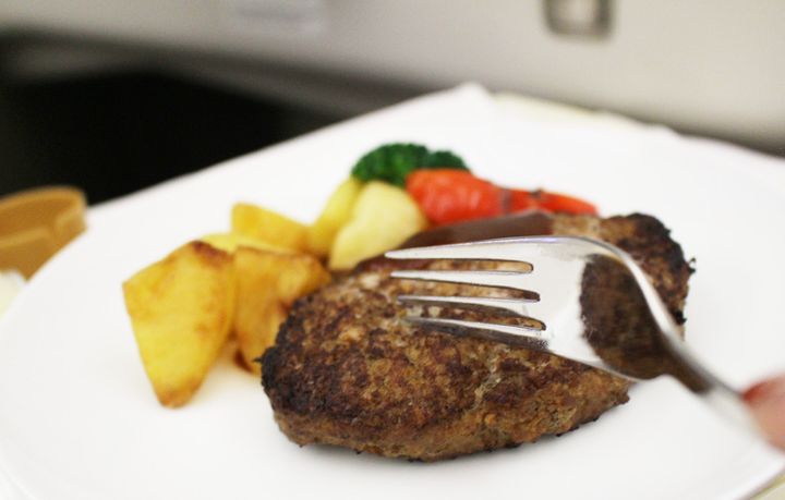 食事は和食と洋食から選ぶことができ、私は洋食メニューをチョイス。メインは「ビーフハンバーグ」です。アミューズから順に提供される料理たち。まるでフレンチのコースのような素敵な盛り付けに心躍ります。味もおいしく大満足。ワインをはじめアルコールなどのドリンクとともに味わうことができるので、フライト時間も優雅なひとときになりました。