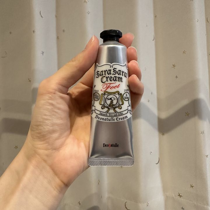 タイツを履く前に こちらを指に塗ってみました。重めのクリームタイプで指の間もしっかり塗り込めて使いごごちはいい感じです。