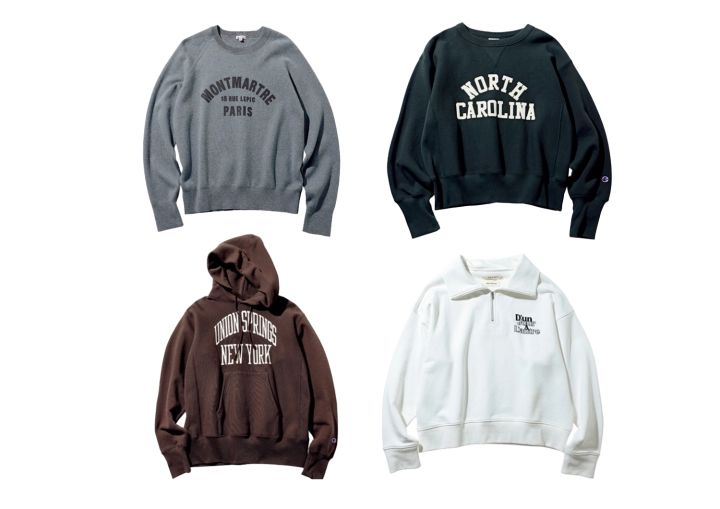 スウェットの王様であるチャンピオンは外せない。ロゴ入りスウェット¥11,880/チャンピオン(ヘインズブランズ ジャパン)