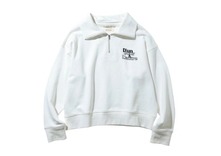 ジップデザインと胸元ロゴが上品。ハーフジップスウェット¥16,500/Stola.