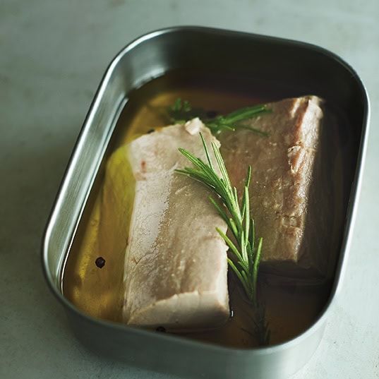 まぐろ、ローズマリーを取り出し、水気をペーパータオルでふく。保存袋(または保存容器)に入れ、Bを加える。冷蔵室に入れ、ひと晩(6~8時間)おく。