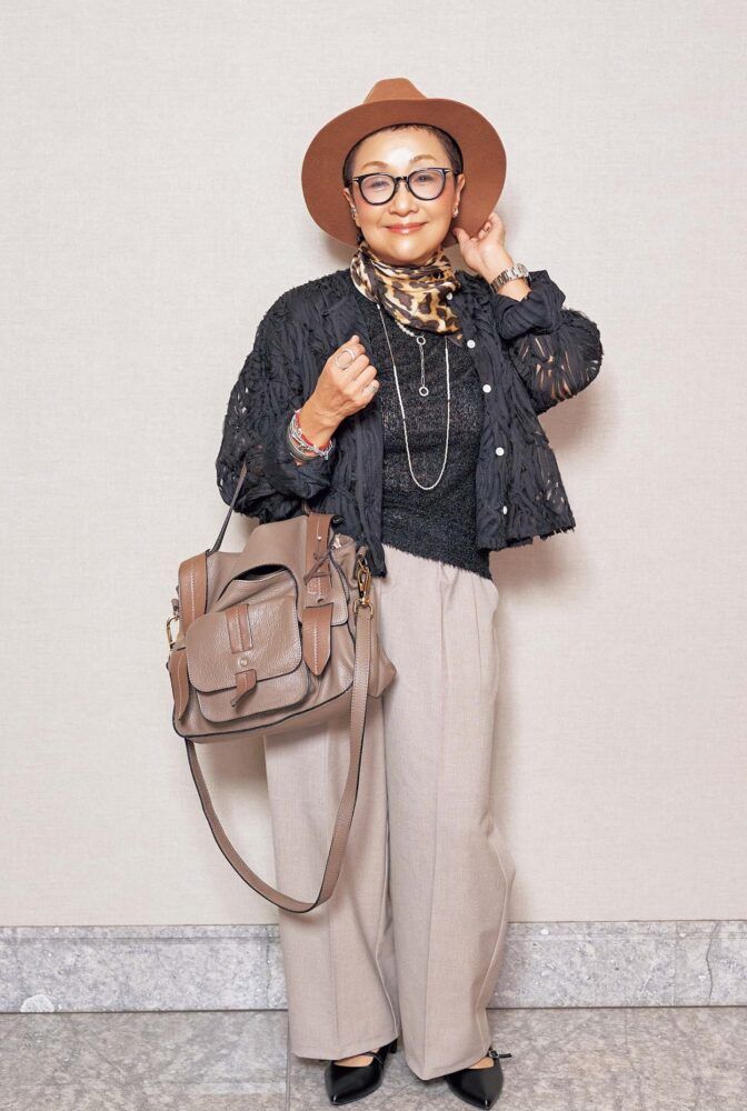 【60代のお手本スナップ】黒×ベージュの定番配色を小物で自分らしくアレンジ!