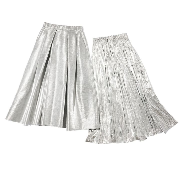 [左]タックボリュームスカート¥46,200(アドーア)[右]ホイルフレアスカート¥16,940(アダム エ ロペ/ジュンカスタマーセンター)
