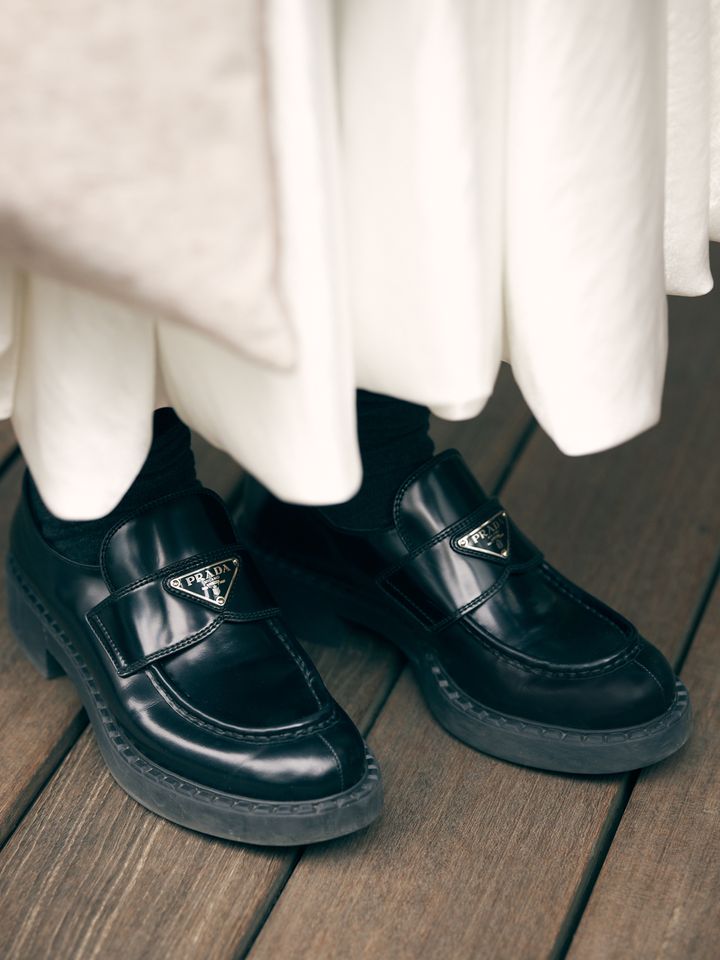 outer/yori tops/GALERIE VIE skirt/THE TOÉ bag/CELINE sub bag/BiBi bag shoes/PRADA hair accessories/gypsophila