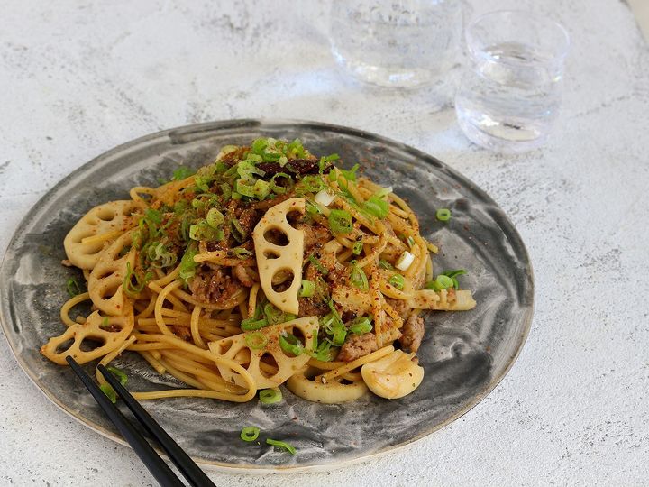 冷めてもイケるおつまみパスタ「豚ひき肉とれんこんの山椒ペペロン」