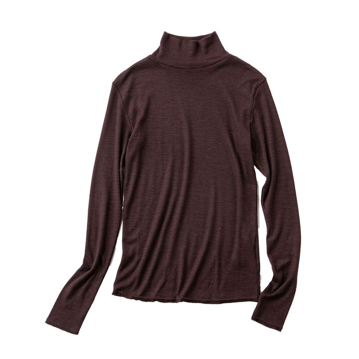 ニュアンスブラウンと薄手の素材でレイヤードスタイルが断然、今年っぽくキマる。ウールの質感もリッチ。¥9,900(ánuans)