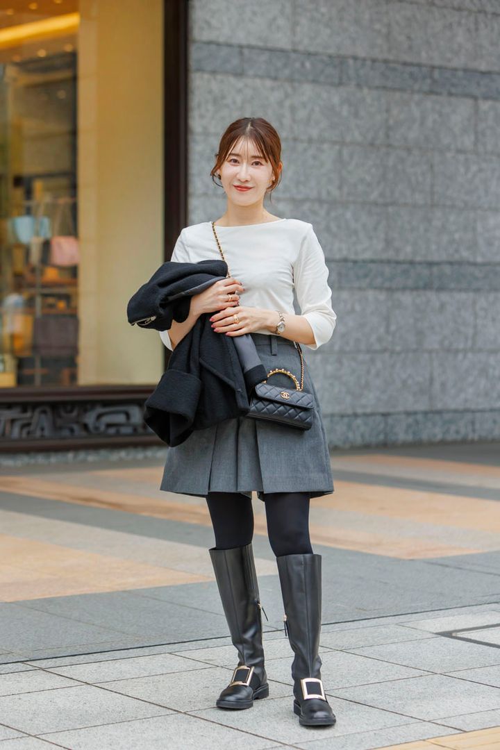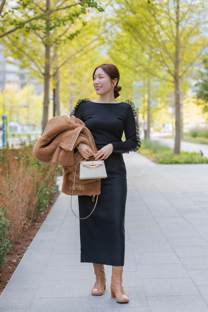 coat/Max Mara tops/HIAND skirt/cygne bag/HERMÈS boots/IENA