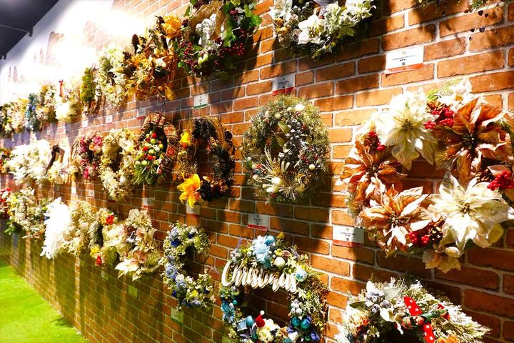 フラワーアーティストが競作したリースがズラッと並んだ「リースの小路」も見逃せない撮影スポット。