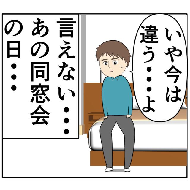 「いや今は違う・・・よ」と否定しながらも、どこか歯切れの悪いろみ緒さん。実は、心の中で「言えない・・・あの同窓会の日・・・」と同窓会の日のことを思い出していました。