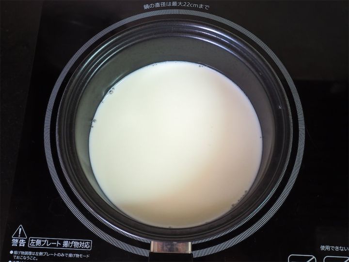 1. 鍋に牛乳を入れ、沸騰直前まで温める。