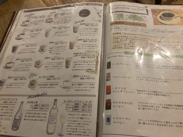 オーガニックカフェということもあり、ヴィーガンメニュー、お豆腐、米粉、ひよこ豆などなど、体に優しいものがたくさんあって気分がゆったりできますね。ランチメニューは季節によって違うメニューも提供されているとのこと。次回行った時は新しいメニューにであうかもしれないのも楽しみです。
