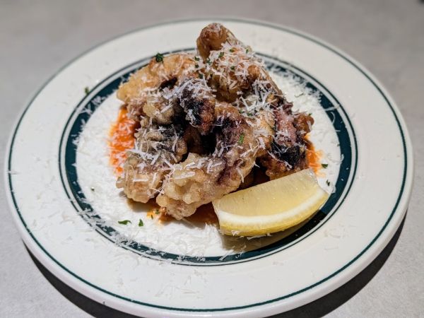 ちょっぴりピリ辛のアラビアータソースがアクセントの「タコフリット~アラビアータソース~」(869円)です。お好みでレモンをかけてくださいね。