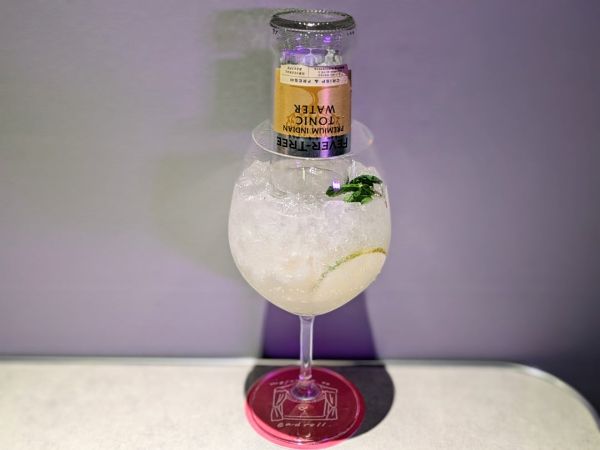 さわやかな味わいの「スペシャルモヒート(ノンアルコール)」(790円)は、トニックウォーターの瓶がグラスにのっているのでインパクトがあります。