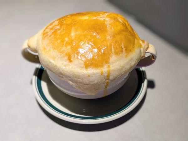 インパクトのある見た目がおしゃれな「オニオングラタンチーズスープ」(649円)です。オニオンスープの中にはチーズが入っていて、濃厚な味わいが楽しめます。